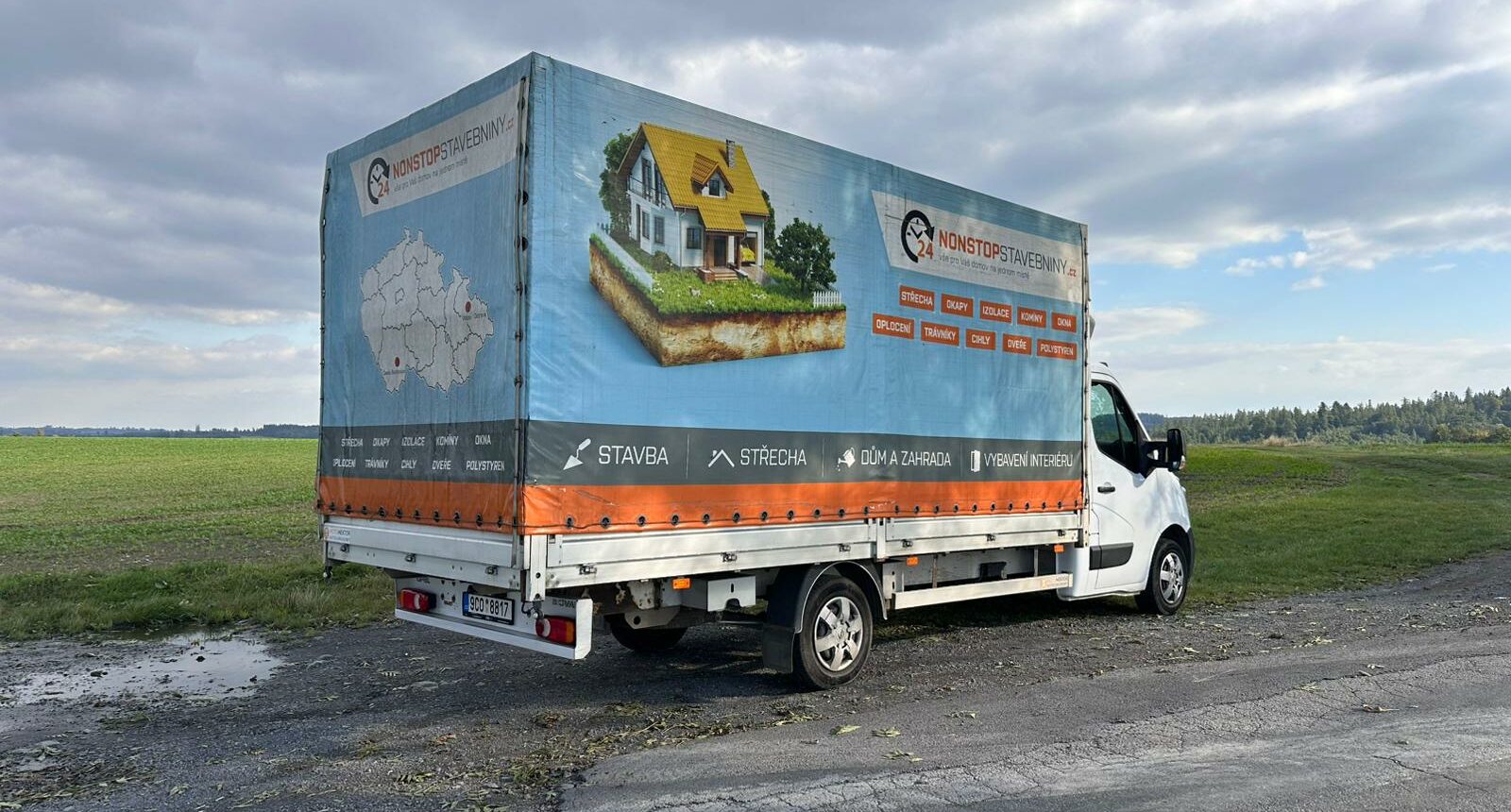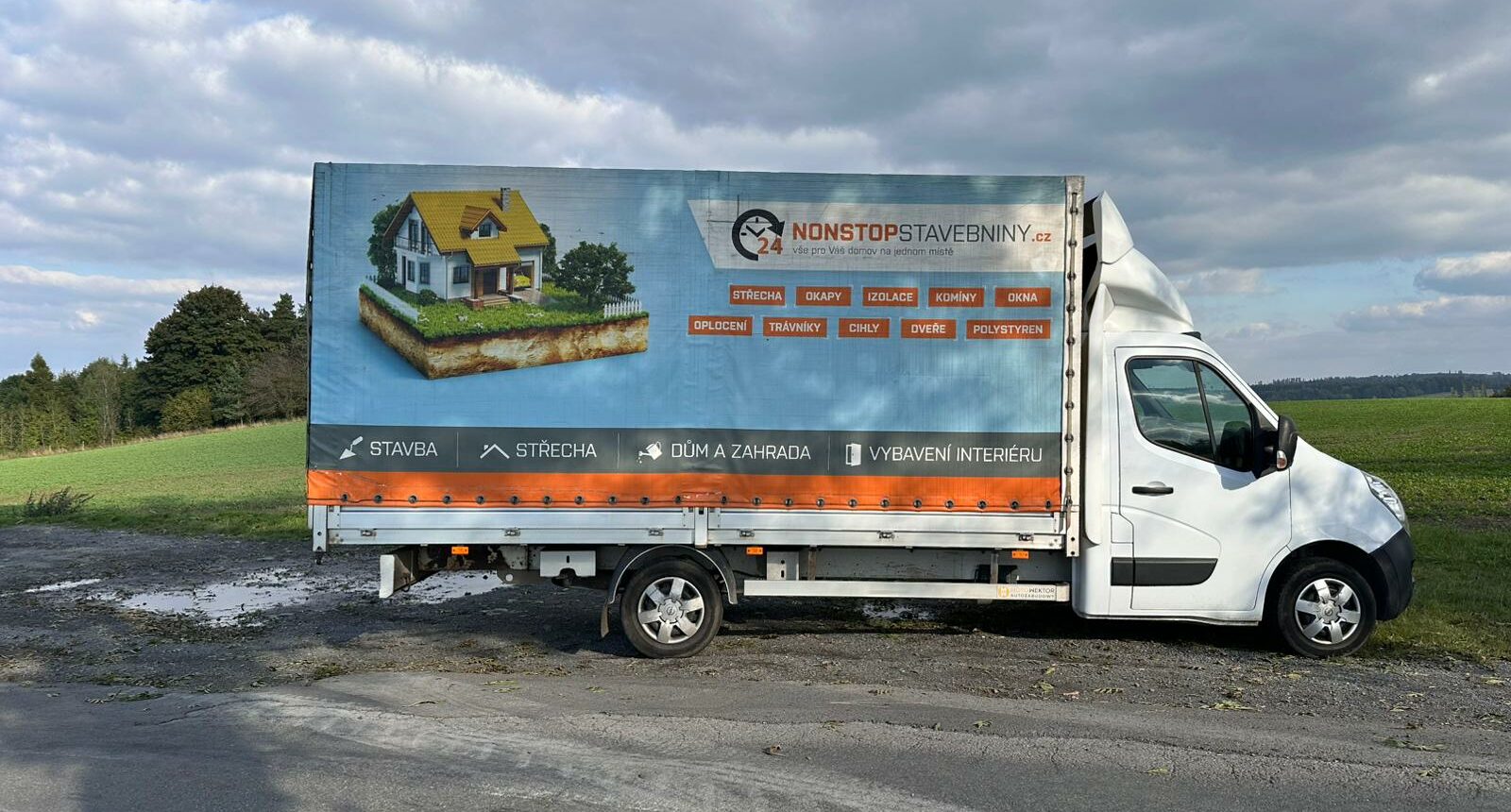 - SHRNOVACÍ PLACHTA NA LEVÉ STRANĚ + hliníkové bočnice výšky 40cm (jednoduché a rychlé otevření nákladového prostoru)